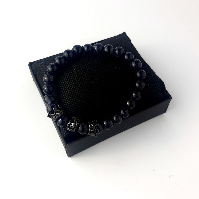 Brățară piatră naturală coroană neagră stil perle cu sclipici