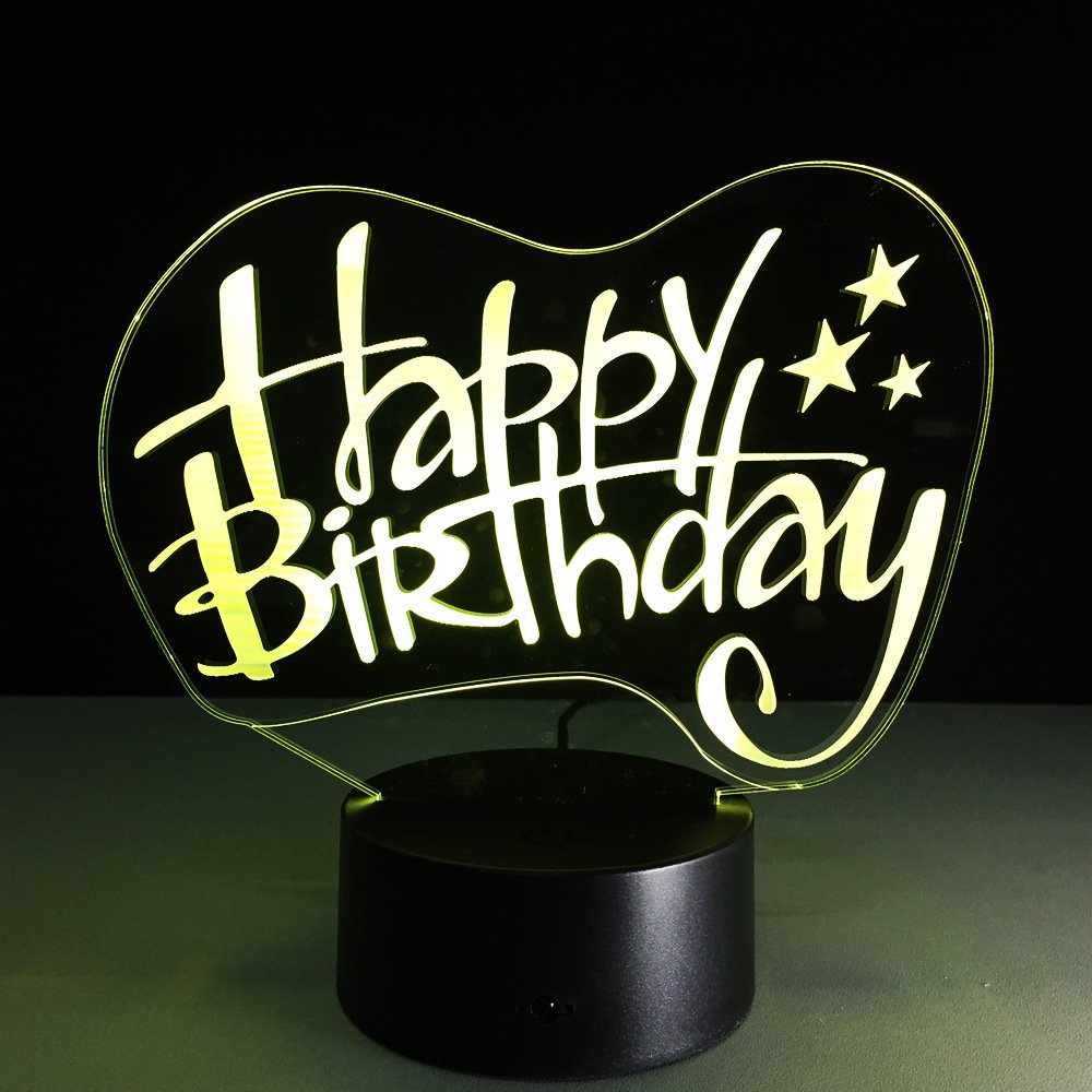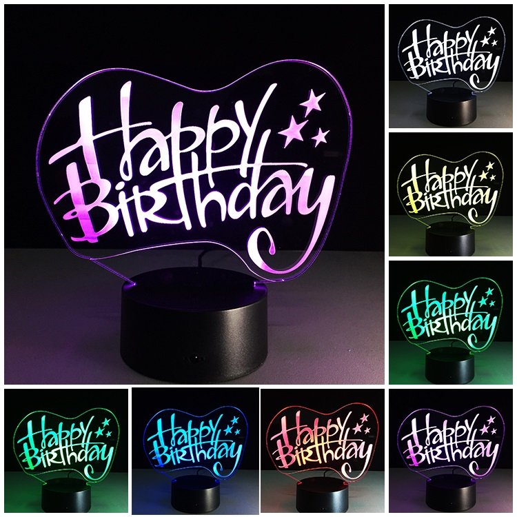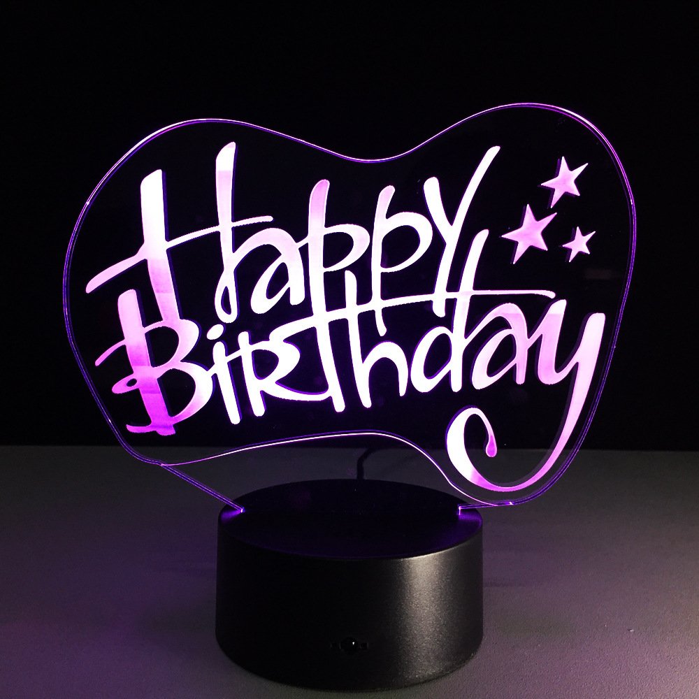 Lampă 3d decorativă în 7 culori – Happy Birthday este formată dintr-un material plan din placă acrilică . Lampa este multicolora , luminile pot fi schimbate automat printr-o apăsare de buton sau manual , conține 7 culori plăcute și ambientale care decorează cu placere orice încăpere . Alimentarea se face printr-un cablu simplu USB . Este un cadou inedit pentru orice ocazie .Iluzia de lumină de noapte cu LED-uri 3D este o combinație de artă și tehnologie care creează o iluzie optică 3D și joacă trucuri asupra ochilor. Nu ezita și COMANDĂ ACUM !